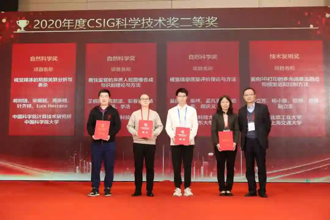 2021年12月27日,中国图象图形学学会颁奖典礼在海口隆重举行。颁奖典礼上颁发了2020和2021年度CSIG自然科学奖、CSIG技术发明奖、CSIG科技进步奖、CSIG石青云女科学家奖、CSIG优秀博士学位论文奖5个奖项,并颁发了2021年CSIG会士荣誉证书,学会副秘书长、提名与奖励工作委员会副主任彭宇新教授主持颁奖典礼。学会理事、ICIG2021参会代表等200余位嘉宾齐聚一堂,共同见证了这一辉煌时刻。