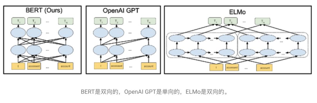 为什么这很重要?预训练表示可以是与上下文无关的或与上下文相关的。与上下文相关的表示又可以分成单向(只跟上文或下文相关)或双向的 (同时考虑上文和下文)。与上下文无关模型诸如 word2vec 或 GloVe 之类的对每个单词生成一个词嵌入表示,所以在这些模型下 “bank” 一词在 “bank account” 和 “bank of the river” 中会具有相同的表示。而与上下文相关模型则基于句子中其他单词来生成每个词的表示。例如,在句子 “I accessed the bank account” 中,一个单向的上下文相关模型表示 “bank” 会基于上文 “I accessed the” 而非下文 “account”。 然而,BERT 表示 “bank” 会同时使用它的 上文 和 下文 — “I accessed the ... account” — 从深层神经网络的最底层开始,成为双向的表示。
