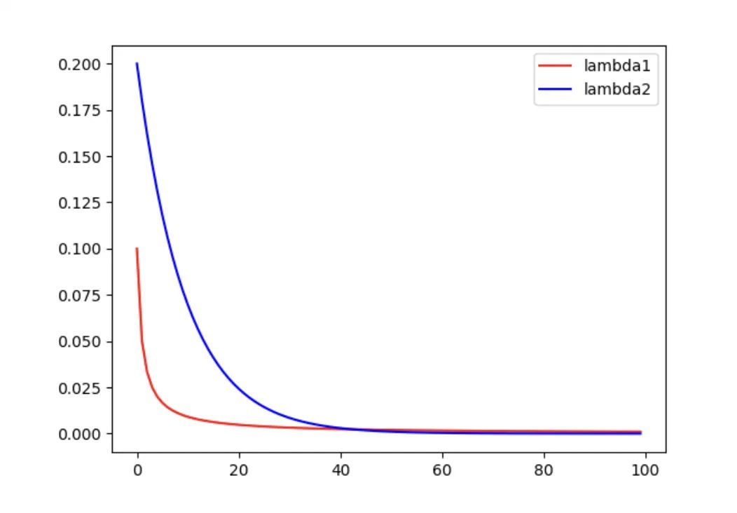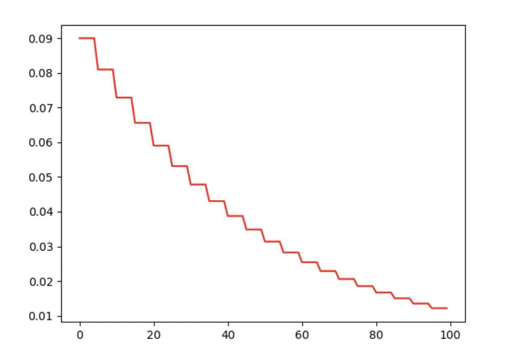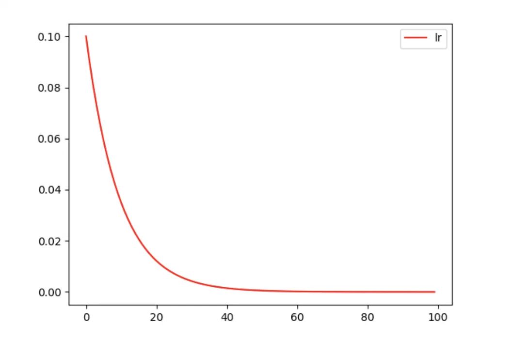 # 指数衰减学习率,衰减率为 gamma=0.9