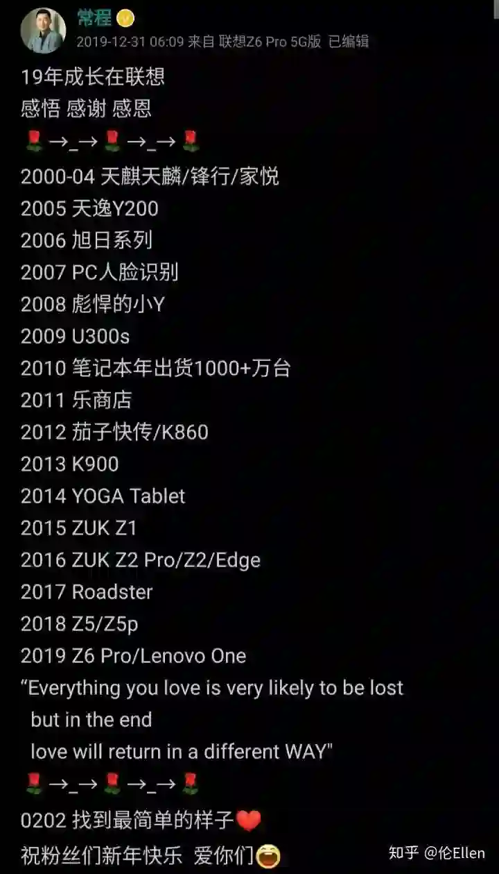 2019年12月31日,常程在微博,宣布将从联想离职,并回忆了过去19年,在联想经手的产品。