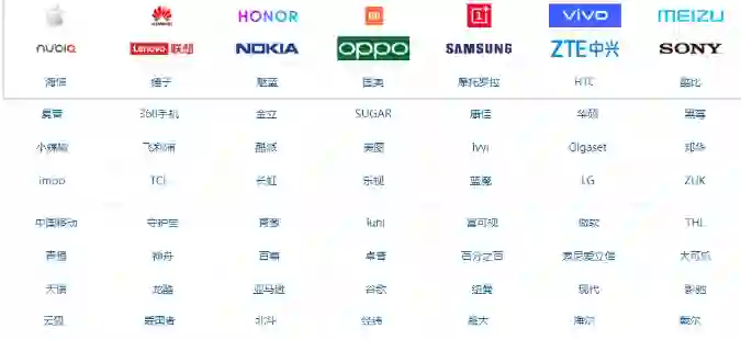 在手机中国官网上,笔者看到近150家手机品牌,这是自然排序下的70家手机厂商的截图。