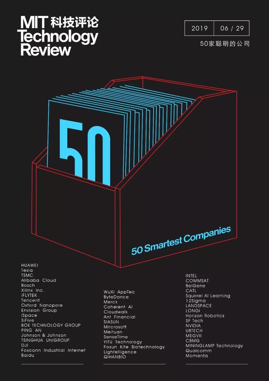 值得注意的是, 2019 年 “50 家聪明公司”榜单在新兴科技上的创新突破外,也充分考虑商业化的成功潜力和卓越的商业智慧价值。