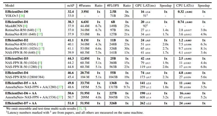 例如:EfficientDet-D0 achieves similar accuracy as YOLOv3 with 28x fewer FLOPS.