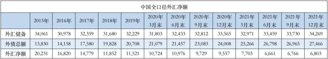 不过拉长时间周期,对比中国全口径外汇净额,从2020年起,中国外汇净额相比以往历年也出现明显下滑趋势。景鉴智库统计数据显示,从2021年二季度末开始,中国全口径外汇净额已经跌至7000亿美元以下,而在2019年以前,全口径外汇净额均在11000亿美元以上。