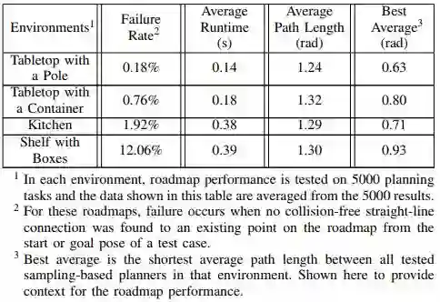 然后,我们将不同的独立规划器与轨迹优化相结合。结果表明,稀疏路线图和轨迹优化的结合有着较其他基于标准采样的规划器组合更优越的性能。我们的方法使用了多查询路线图而不是为每个规划问题生成全新的轨迹,并且我们的方法允许扩展,例如与跨规划问题的轨迹相关联的持久控制策略信息。此外,由路线图的稀疏性产生的次优性以及来自环境的意外干扰都可以通过实时轨迹优化过程来克服。