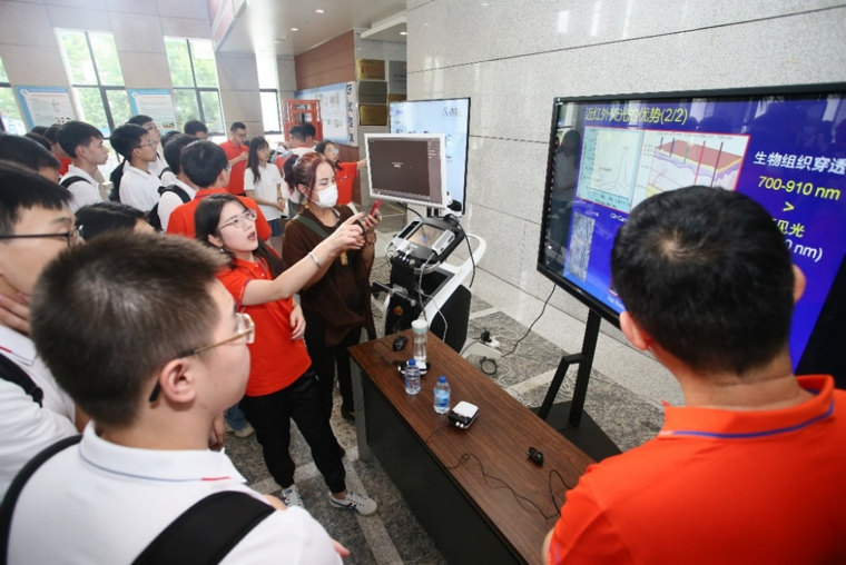 在科研项目与成果参观环节,虹膜识别、机器鱼、人机对抗决策系统等20余项科研成果集中进行了展示。学员们通过讲解志愿者的介绍和交互体验深入了解了研究所的科研布局和主要研究成果。随后,学员们还参加了部分导师的线上见面交流会,就导师的研究方向、科研生活、课题组内情况等问题进行了交流和互动。