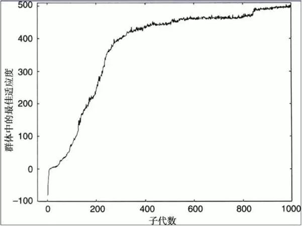 图 遗传算法演化策略过程中,各代群体的最佳适应度(得分表现)