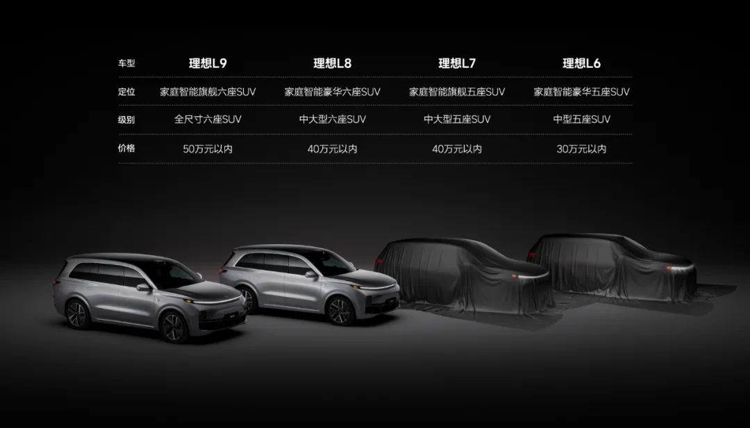 同时其还透露出更多的新车型计划,比如定位为中大型SUV的理想L7与定位30万元以内的中型SUV理想L6,其中理想L7也将于9月30日开启预订,并于明年2月份开启交付。