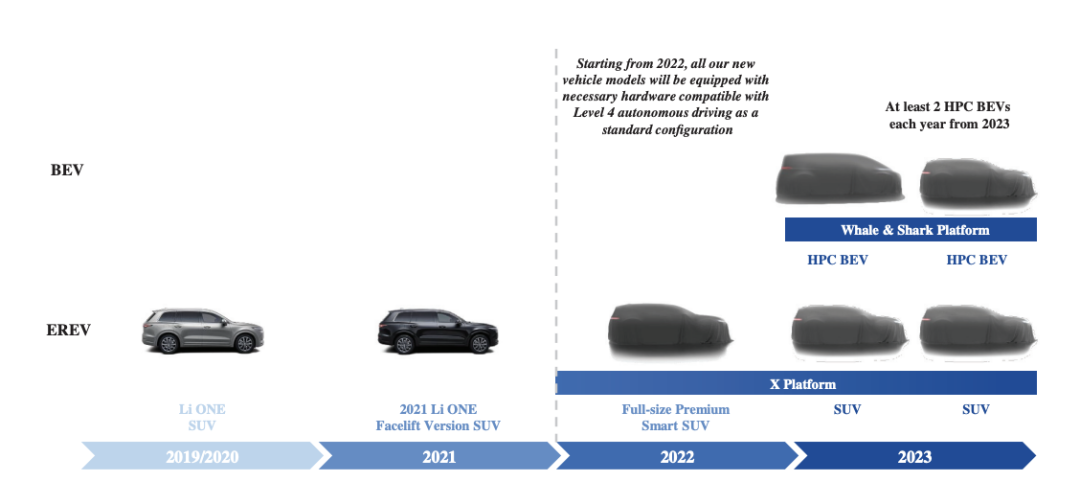 根据理想汽车港股招股书,在原本的规划中,截止2023年,理想X平台共计规划三款SUV车型,其中2022年仅规划一款全尺寸SUV即理想L9,其余两款均规划于2023年完成上市计划。