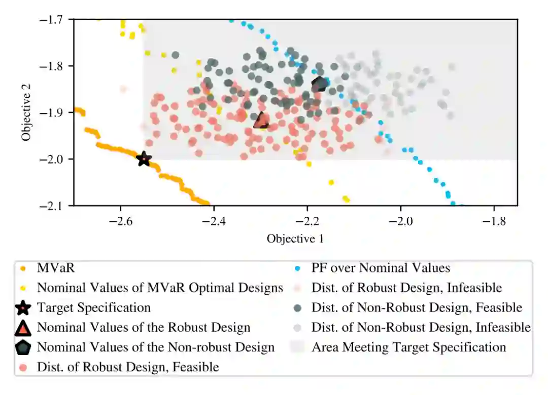 由此,其定义了跨越设计空间的全局风险,是采用一系列点(见图 1 的三角形),在多目标情境下对于帕累托边界的进行鲁棒近似,这也是这篇文章的重要贡献之一。