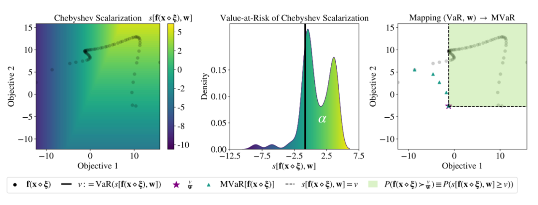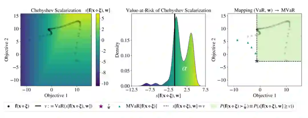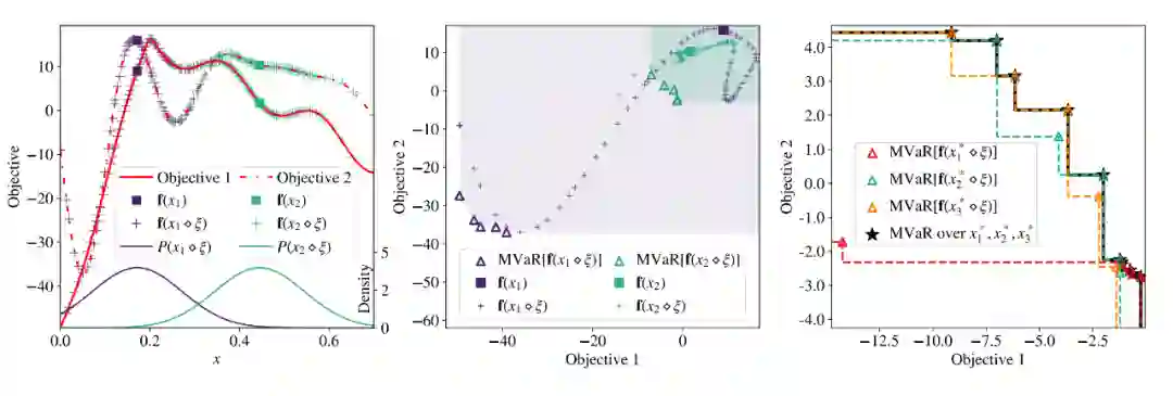 在这项工作中,作者提出了第一个鲁棒的多目标贝叶斯优化方法以应对输入噪声。作者将目标形式化为优化一种不确定目标的风险度量,即多变量风险值(MVaR)。由于直接优化 MVaR 在许多情况下在计算上是不可行的,作者提出了一种可扩展的、基于理论的方法来使用随机尺度来优化 MVaR。实验上而言,该方法在数据集上显著优于其他方法,并有效地实现了最优鲁棒设计。