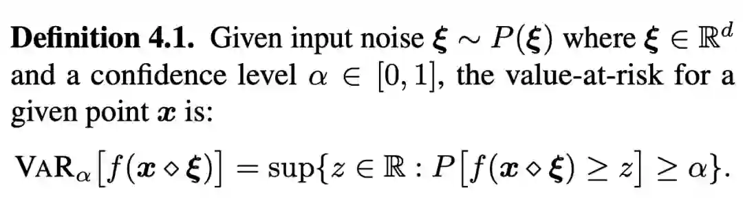在这里首先要对于风险进行定义。由于期望风险测量可能并不总是与真正鲁棒性目标相一致,所以在这里采用概率风险进行分析,并得到以下定义: