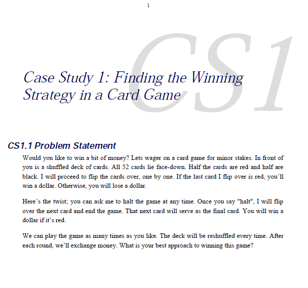 开放式解决问题的能力对于数据科学职业来说是必不可少的。不幸的是,这些能力不能通过阅读来获得。要成为一个问题解决者,你必须坚持解决困难的问题。带着这种想法,我的书围绕着案例研究展开:以真实世界为模型的开放式问题。案例研究范围从在线广告分析到使用新闻数据跟踪疾病暴发。