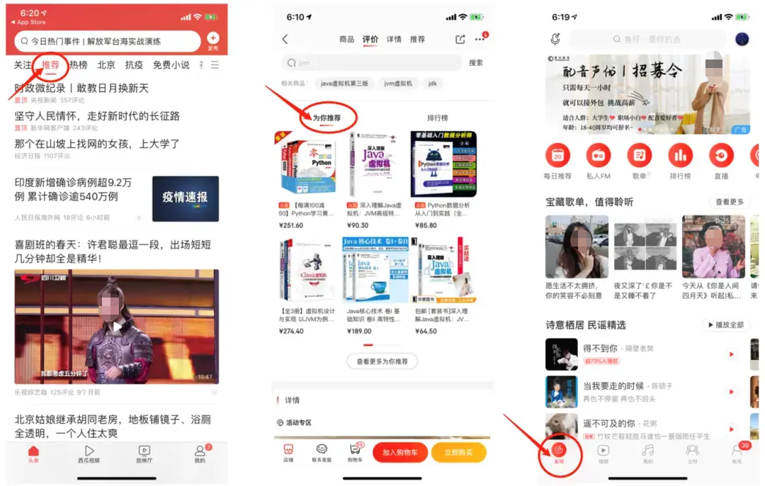 哪里有海量信息,哪里就有推荐系统,我们每天最常用的APP都涉及到推荐功能: