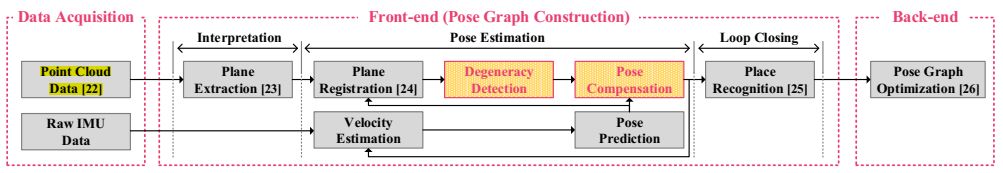 通过将IMU的方向值投影到相应平面特征上来补偿遇到退化的方向.