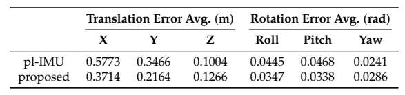 表1:两种不同方法的三维位姿平均误差