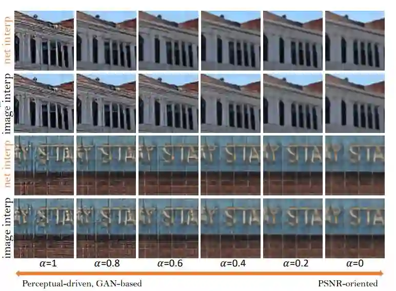 在两个相互矛盾的目标中间插值:最小化PSNR或最大化感知相似性