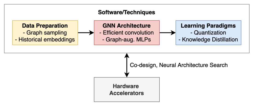 从长远来看,我们希望图数据 + GNN 从一个深奥的新兴研究领域转变为用于机器学习研究和应用的标准数据 + 模型范式(很像 2D 图像 + CNN,或文本 + Transformers)。因此,我们可能期望看到 GNN 更深入地集成到 PyTorch 或 TensorFlow 等标准框架中,为 GNN 开发专门的硬件加速器,以及更复杂的图数据软硬件协同设计。