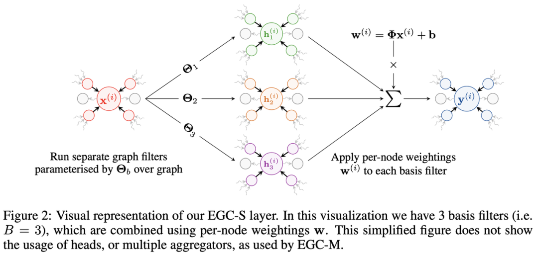Tailor 等人的高效图卷积 (EGC) 试图解决这个困境。他们从基本的 GCN 设计开始(对于批量中等大小的图具有良好的可扩展性),并设计了一个最大表达的卷积 GNN 版本,同时保留了 GCN 的可扩展性。令人印象深刻的是,它们在 Open Graph Benchmark 的图分类任务中优于更复杂和繁琐的基准模型。