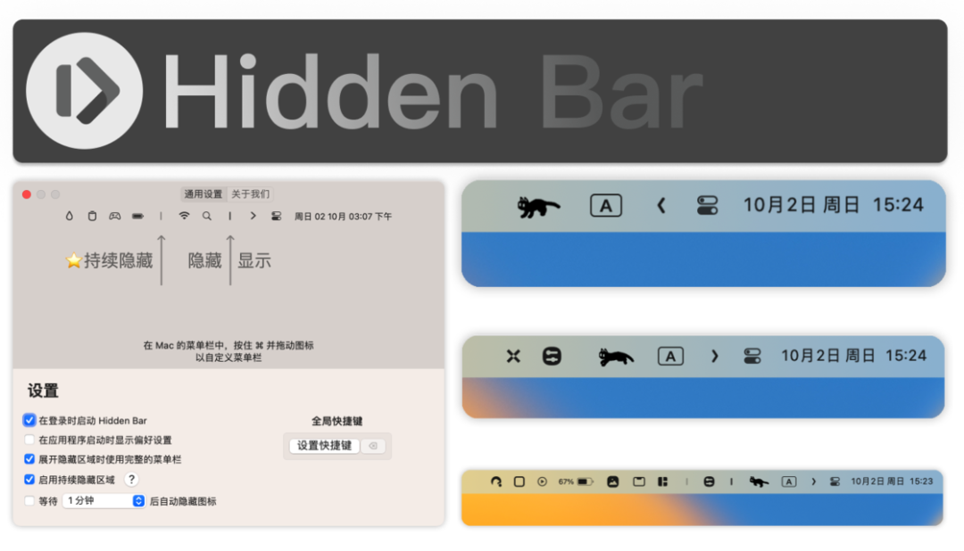 按住 ⌥ 时点击菜单栏的 Wi-Fi / 蓝牙 / 菜单项,显示的是详细信息或隐藏选项