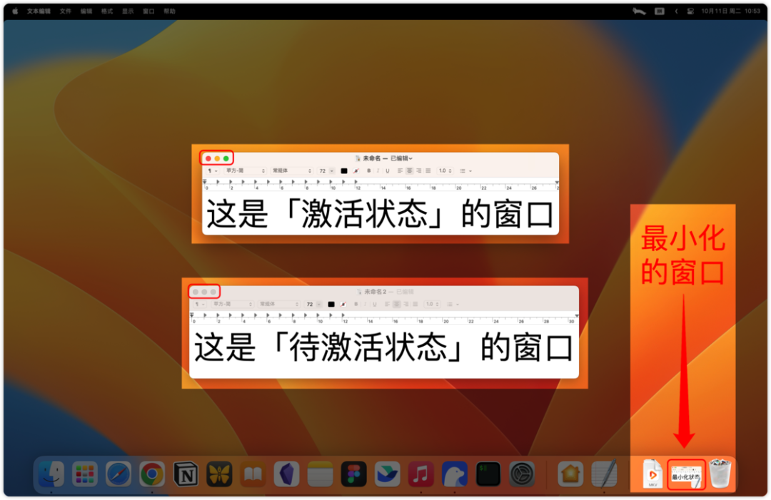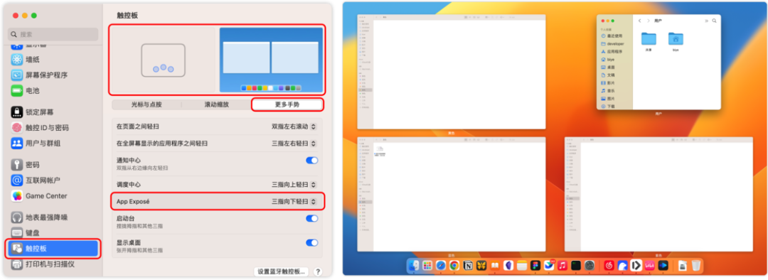 鼠标点击 Dock 上的应用图标 / 应用窗口进行切换