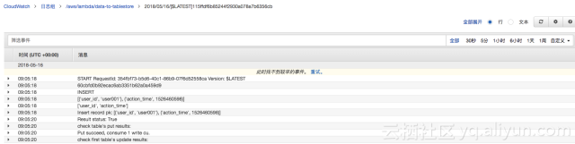 Lambda 运行的日志都会写入到 CloudWatch 中,在 CloudWatch 选择对应的函数名,则可以实时查询到 Lambda 的运行状态。