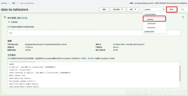 依次选择putdata、updatedata和deletedata,会发现表格存储中的数据也会随之更新和删除。