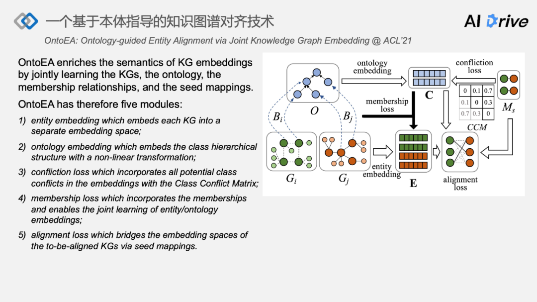 OntoEA 是一种基于增强 enbedding-bassed 知识图谱对齐方法,用本体的信息避免类别冲突,OntoEA 是第一个在这个任务当中用到本体信息以及图谱建模。