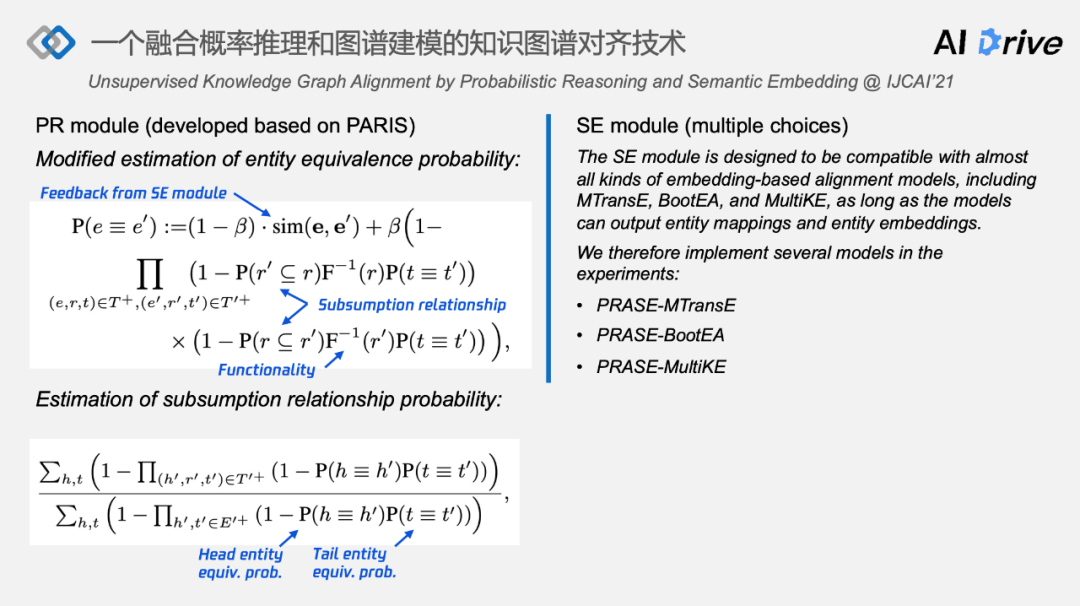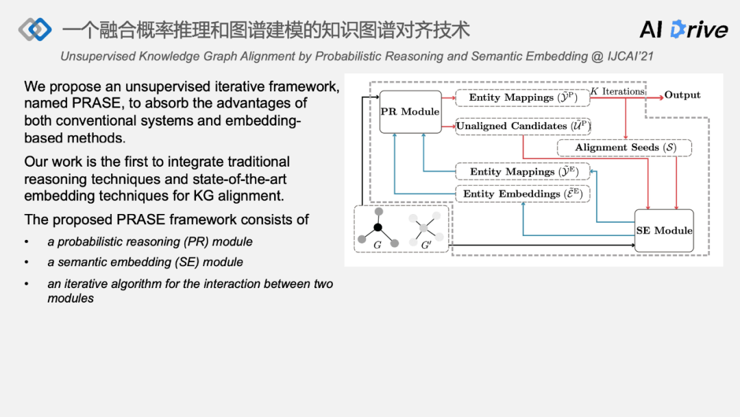 第三,提出了可以融合概率推理和图谱建模的知识图谱对齐技术;