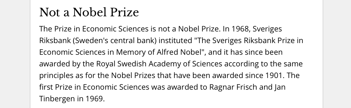 只不过,在诺奖的网站上,可以赫然看到几个大字:“Not a Nobel Prize”——你不是我亲儿子。
