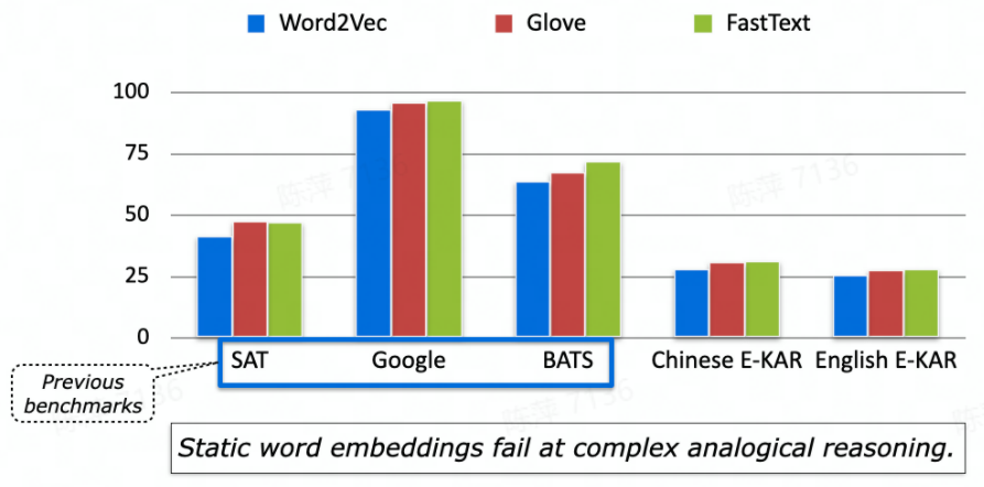 ▲ 图5. 词嵌入在 E-KAR 和简单类比数据集上的准确率