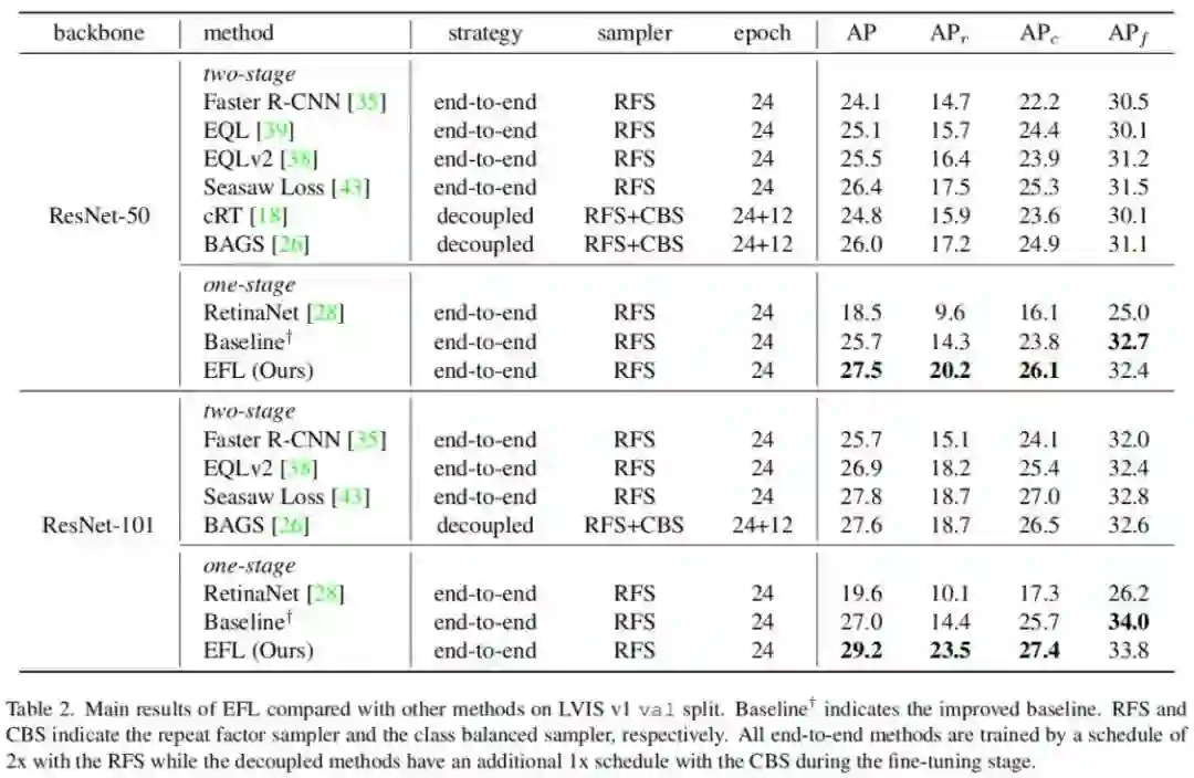 而本文提出的EFL可以很好地应用于这些单阶段框架,并在长尾场景中带来显著的性能提高。