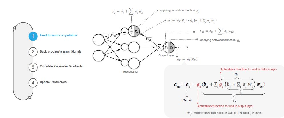 关于神经网络的完整训练过程,作者用简略流程图+计算细节展开的方式呈现: