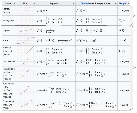 对于并列的可选项(如激活函数、常用神经网络架构等),也会有全面的列表: