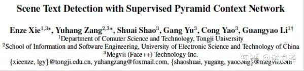 [7]E.Xie,Y.Zang,S.Shao,G.Yu,C.Yao,andG.Li.Scenetext detection with supervised pyramid context network. arXiv preprint arXiv:1811.08605, 2018.