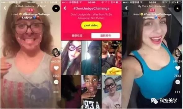 Musical.ly社区活动——“Don't Judge Me”,用户先把自己画丑然后一挥手就恢复真实的模样,以此来表达“不要用外貌评价我”的态度。