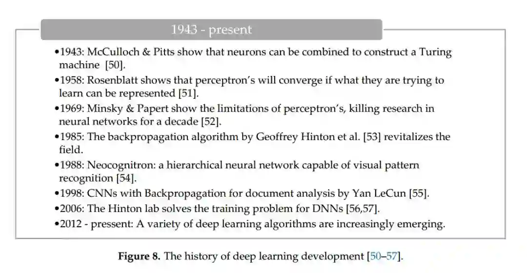 关键词:卷积神经网络(CNN);循环神经网络(RNN);自动编码器(AE);受限Boltzmann机器(RBM);深度信念网络(DBN);生成对抗性网络(GAN);深度强化学习(DRL);迁移学习。