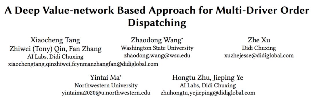 本文是对滴滴Oral论文《A Deep Value-networkBased Approach for Multi-Driver Order Dispatching》的详细解读。滴滴AI Labs技术团队在KDD2018 Oral 论文《Large‑Scale Order Dispatch in On‑DemandRide‑Hailing Platforms: A Learning and Planning Approach》的基础上,新提出了一种新的基于深度强化学习与半马尔科夫决策过程的智能派单应用,在同时考虑时间与空间的长期优化目标的基础上利用深度神经网络进行更准确有效的价值估计。通过系统的离线模拟实验以及在滴滴平台的在线AB实验证明,这种基于深度强化学习的派单算法相比现有最好的方法能进一步显著提升平台各项效率及用户体验。