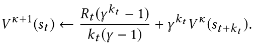 上面的公式表示了司机从状态St经过k个时间步长转移到St+k,并收获奖励R。这里跟标准MDP最大的不同在于等式右边第一项等效即时奖励,不是直接用R,而是对R做了一个跟步长k相关的衰减。在Semi-MDP框架下两个带来同样收益的动作,时间跨度小的动作的等效即时奖励更大。另一角度来看,这可以理解为对广泛应用于实际的reward clipping做了一个平滑 (smoothing) 处理,用连续衰减代替了截断处理 (clipping)。