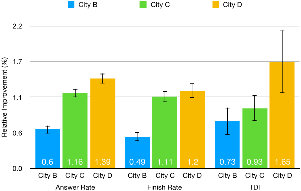 我们分别通过线下模拟以及线上AB测试来验证方法的有效性。在基于现实数据的线下模拟实验中,我们与其他四种不同方法进行了系统的多城市多天的对比。在为期多周线上AB测试中,在三个不同城市从不同维度上 (应答率,完单率,司机总收入) 与线上默认方法进行了对比。结果均显示,我们提出的基于神经网络长期价值估计的强化学习派单算法能进一步显著提升平台司机收入以及用户体验。