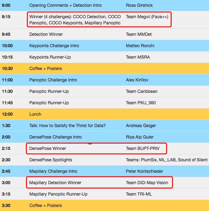 根据ECCV COCO Workshop的日程表,我们可以发现: