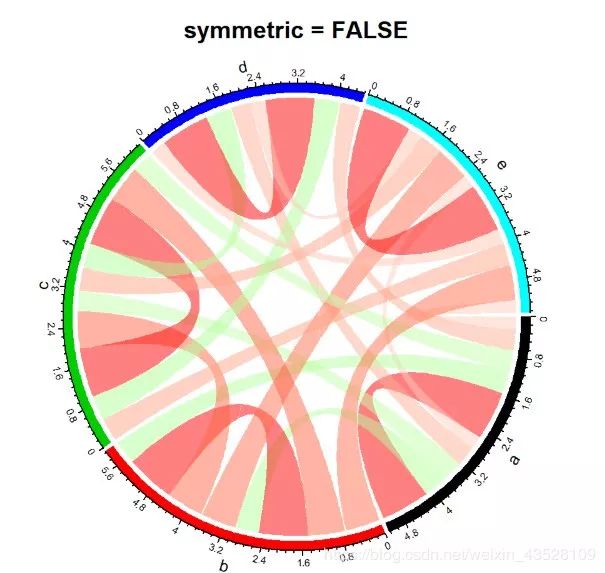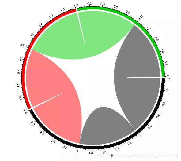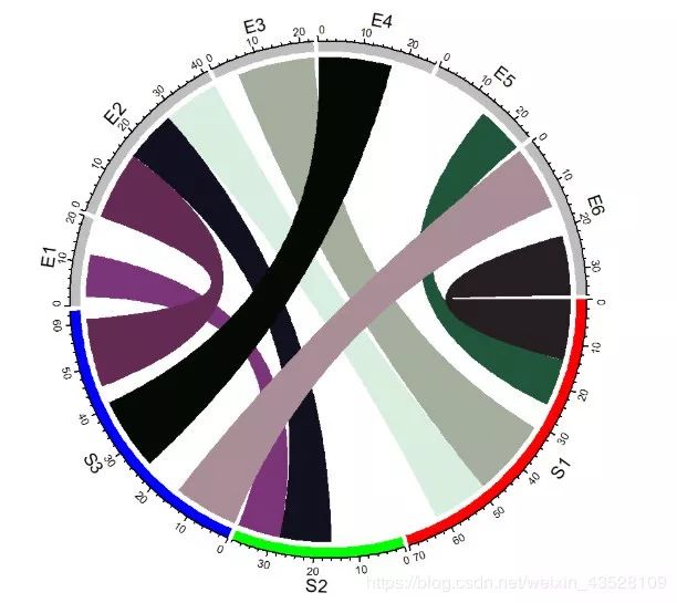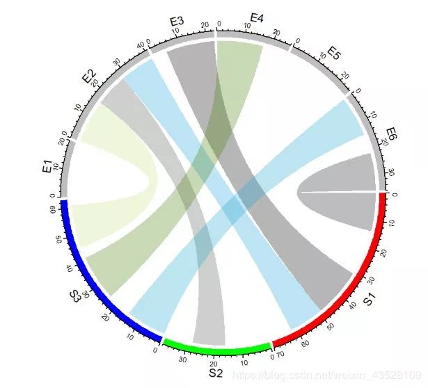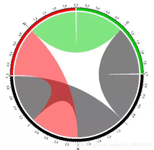 chordDiagram(mat, grid.col = grid_col, annotationTrack = "grid") # 只显示网格,不显示刻度线和标签轨道