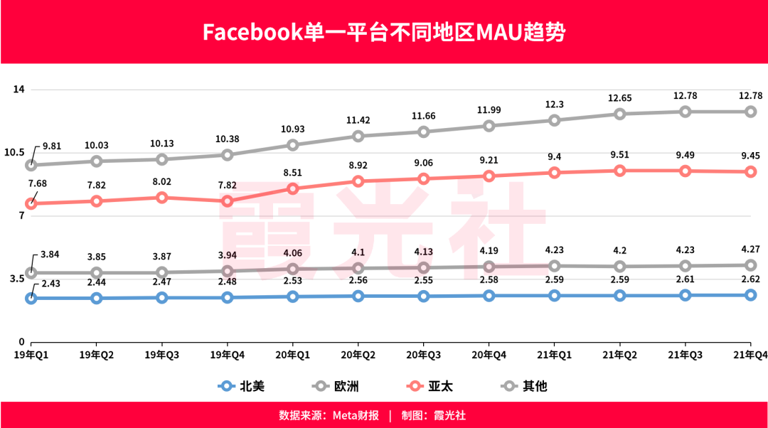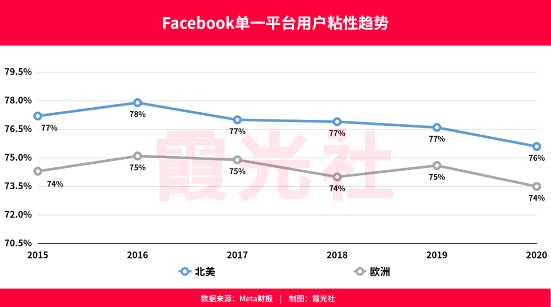 美国用户平均每天打开Facebook的时间降至20分钟,其在欧美地区的用户粘性一直在缓慢下滑,明显受到了音视频社交产品的侵蚀。
