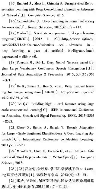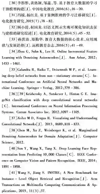 教育部在2010年颁布的《国家中长期教育改革和发展规划纲要(2010-2020年)》和2013年颁布的《教育部关于推进中小学教育质量综合评价改革的意见》中均指出收集分析学生的成长记录与学习数据,着重突显教育大数据深层价值的可塑性。基于层次架构的深度学习,通过对海量数据从较低层级训练到较高层级复杂规律与模式的抽取,完成数据价值的有效提炼,其主要优势是从大规模未标记、无监督数据中有层次地学习,以提取有意义的抽象表示和特征。将深度学习引入教育领域,为学习增强、学习预测、学习迁移、知识表征和精准化学习管理等教与学实践带来了重要发展机遇。