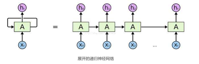 但是人们在阅读一篇文章或观看一段视频的时候,往往不是根据单一的帧或单词进行理解,而是需要与前后所看过内容相结合,完成对整体内容的理解。传统的神经网络不能做到这点,因此,在视频文本摘要中,往往需要一种特殊的神经网络——Recurrent Neural Networks(循环神经网络)。RNN 是一种具有循环结构的网络,它可以持续保存前面的信息,其大致网络结构如下图: