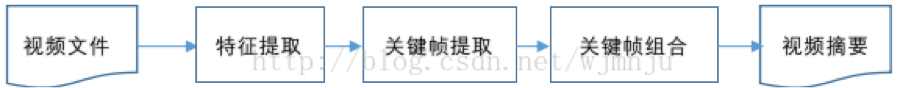 例如,公开课的视频中,提取出含有完整 PPT 的帧。我们将含有关键信息的所有帧提供给浏览者,可以使其在较短的时间内了解到较长视频的主要内容。又例如,将一个 2 小时的电影提取出其关键部分,组合成一个 2 分钟的预告片,也属于静态视频摘要。其提取流程大致如下: