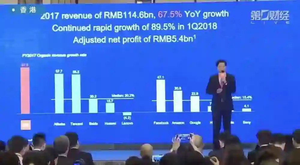 2017年,小米收入年增长67.5%,今年一季度加速增长,在89.5%。2017年,小米的互联网收入达99亿人民币,毛利率超过60%。雷军表示,如果不考虑电商的话,这99亿人民币的收入也能使小米进全球互联网公司的前25名。