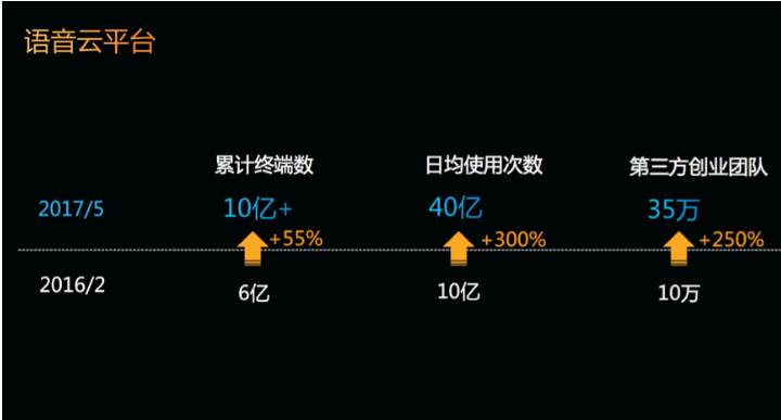 语音技术如今已被应用到各行各业,讯飞开放平台致力于为开发者提供一站式人工智能交互解决方案。数据显示,超过 35 万的开发者在使用讯飞的语音接口,每天的服务次数超过 40 亿次,而一年前这个数字只有 10 亿次,增长速度可见一斑,也从侧面显示出受众对于人工智能技术的需求猛增。