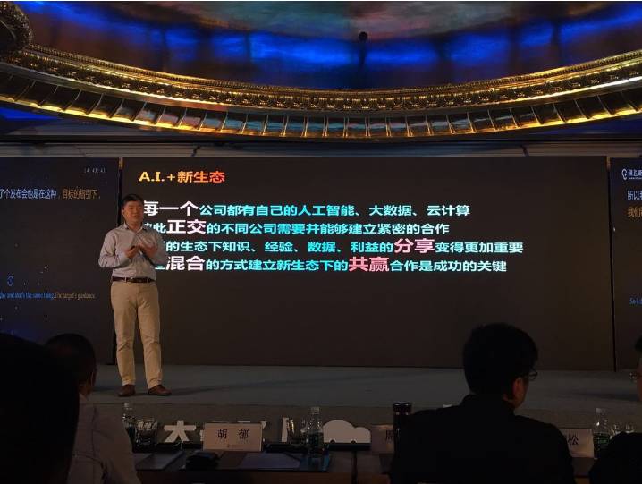 演讲中胡郁分享到,未来每一个公司都有自己的人工智能、大数据、云计算。彼此正交的不同公司需要并能够建立紧密的合作。在新的生态下知识、经验、数据、利益的分享变得更加重要,通过混合的方式建立新生态下的共赢合作是成功的关键。