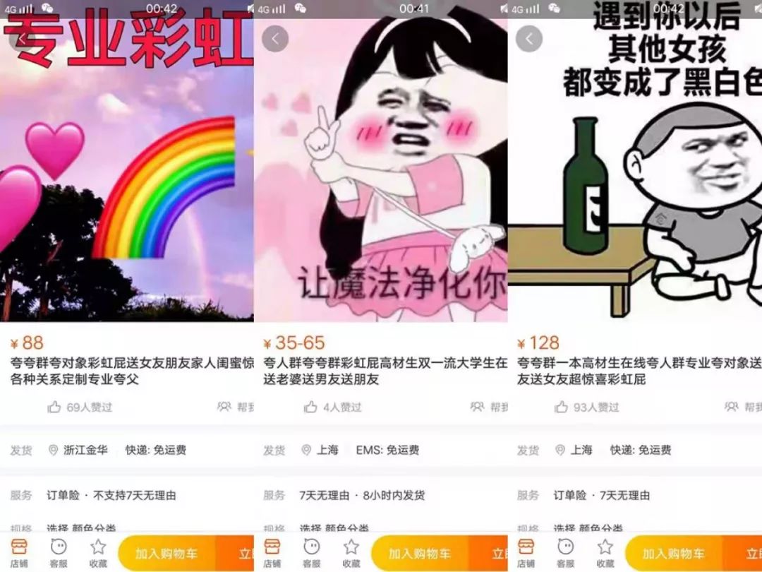 打开淘宝搜索“夸夸群”我们会看到大部分商家都打出了类似的营销噱头。